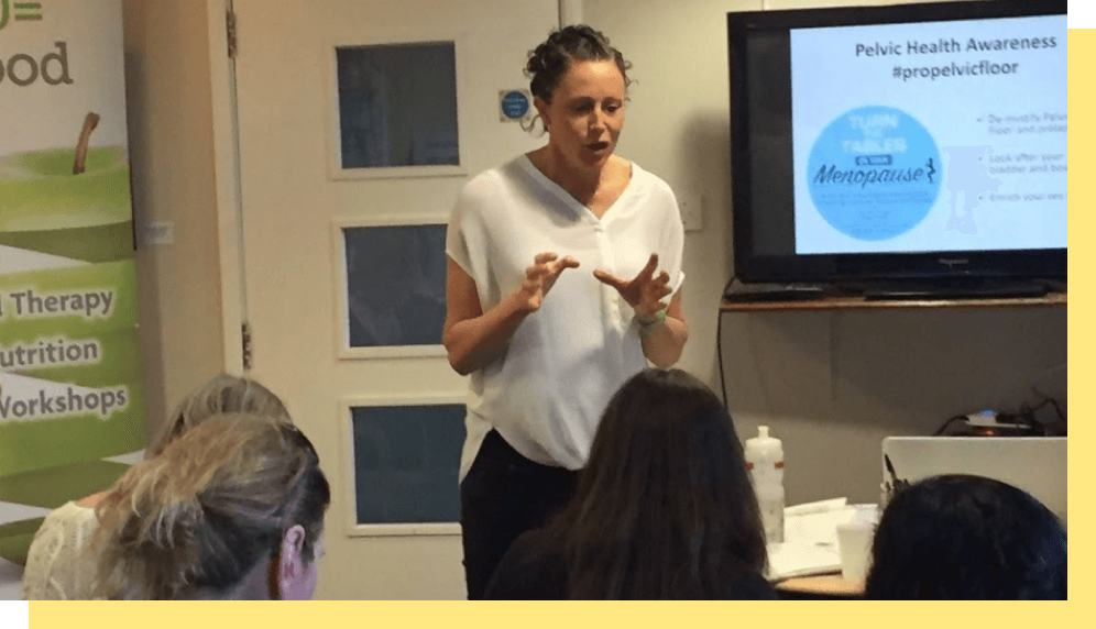 We host educational workshops on all women's health issues such as pelvic health, childbirth and menopause. The vibe is safe, fun and empowering.